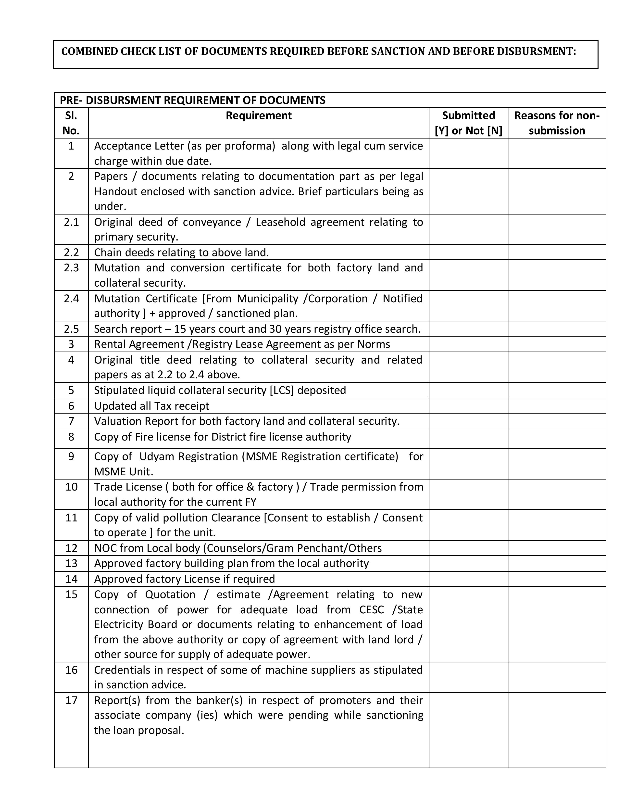 CHECKLIST FOR BEFORE DISBURSEMENT (Annexure-B)